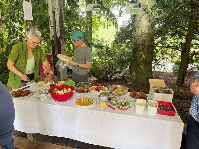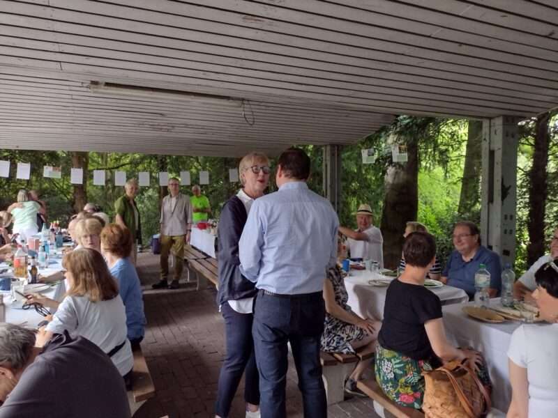 Ein weiterer Dank geht an den Wettergott, der uns mit strahlendem Sonnenschein einen wundervollen Rahmen geschenkt hat. So hatten wir mit fast 50 Menschen einen tollen Nachmittag und Abend. Bei allerbester Laune und tollen Gesprächen genossen wir Grillgut, Salate und Kuchen.
