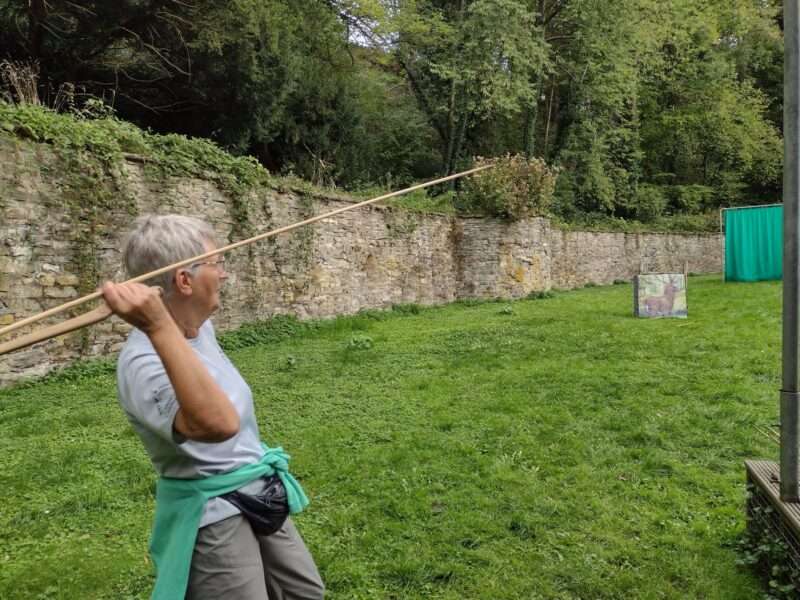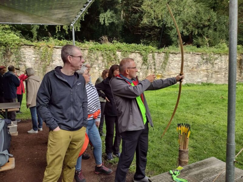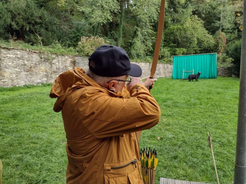 Bei dem Museum hatten wir eine Führung und eine Aktion mit Bogenschießen und Feuerschlagen gebucht. Nach dem Mittagessen im Restaurant Gavi gab es nachmittags dort noch Kaffee und Kuchen. Dazwischen bestiegen wir den Erlebnisturm Höhlenblick. Es blieb auch noch genug Zeit, um das Eiszeitliche Wildgehege zu umrunden.
